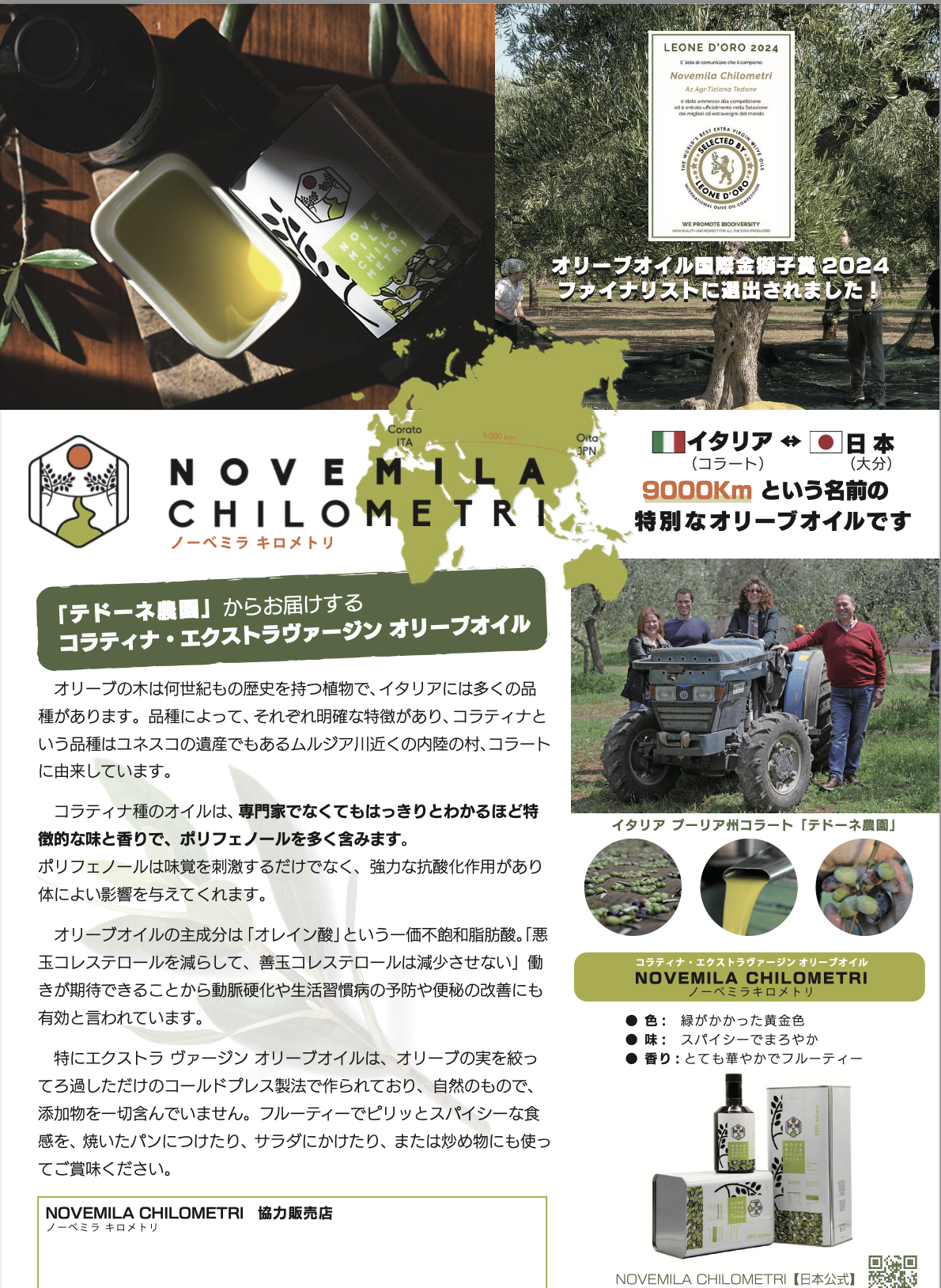 こ゚縁がつながり、世界で称賛される、イタリアのコラート地方のコラティナ種のオリーブオイルをご紹介できる運びとなりました。